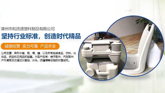 漳州市和浩源塑料制品有限公司是漳州塑料制品行業的知名企業,本公司擁有專業的團隊,從產品設計、模具開發到生產,并具有先進的生產設備,精湛的生產工藝,嚴格的管理,具備根據用戶需要進行設計、制造生產用戶所需產品的能力。 公司主營:異形水箱、瓶、桶、罐、以及所有包裝食品,飲料,化妝品,藥品和日用品的容器。大型產品有:椅子配件、汽車配件、戶外桌板及交通注水圍擋、水馬、防撞桶等設施的吹塑成形。 “誠實守信,互惠共贏”,是我們的經營理念;“精益求精,細致服務”,是我們的工作準則,“堅持行業標準,創造時代精品,追求優良的品質”,是我們的質量標準和目標;“以人為本,科技創新,簡捷嚴明,管理規范”是我們管理機制的核心內容;“生產優良產品,提供細致的服務”,是我們的承諾。